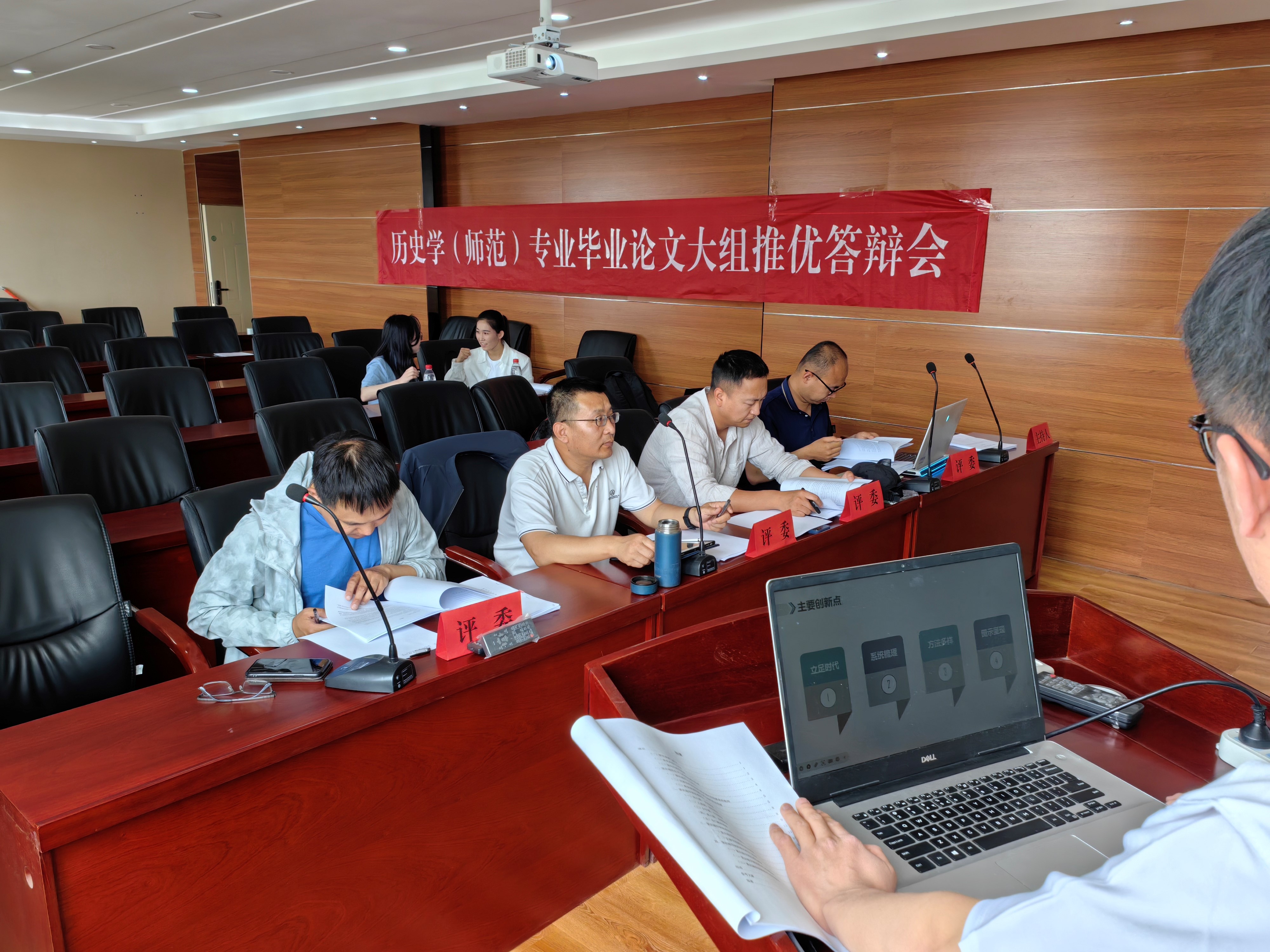 此次答辩活动围绕学生陈述、教师点评提问、学生作答三个环节展开。从选题看,学生能够立足专业,凝练方向,既有对宋元时期海商群体的探索,如陈康灵同学的《宋末元初投元海商群体的研究—以崇明朱氏、澉浦杨氏及泉州蒲氏为例》,也有对中学历史教学实践的探索,如马稚花同学的《对话式教学在中学历史教学中的运用研究——以银川市第八中学为例》,还有近代教育思想的相关论题,如何建龙同学的《梁启超学制思想研究》。