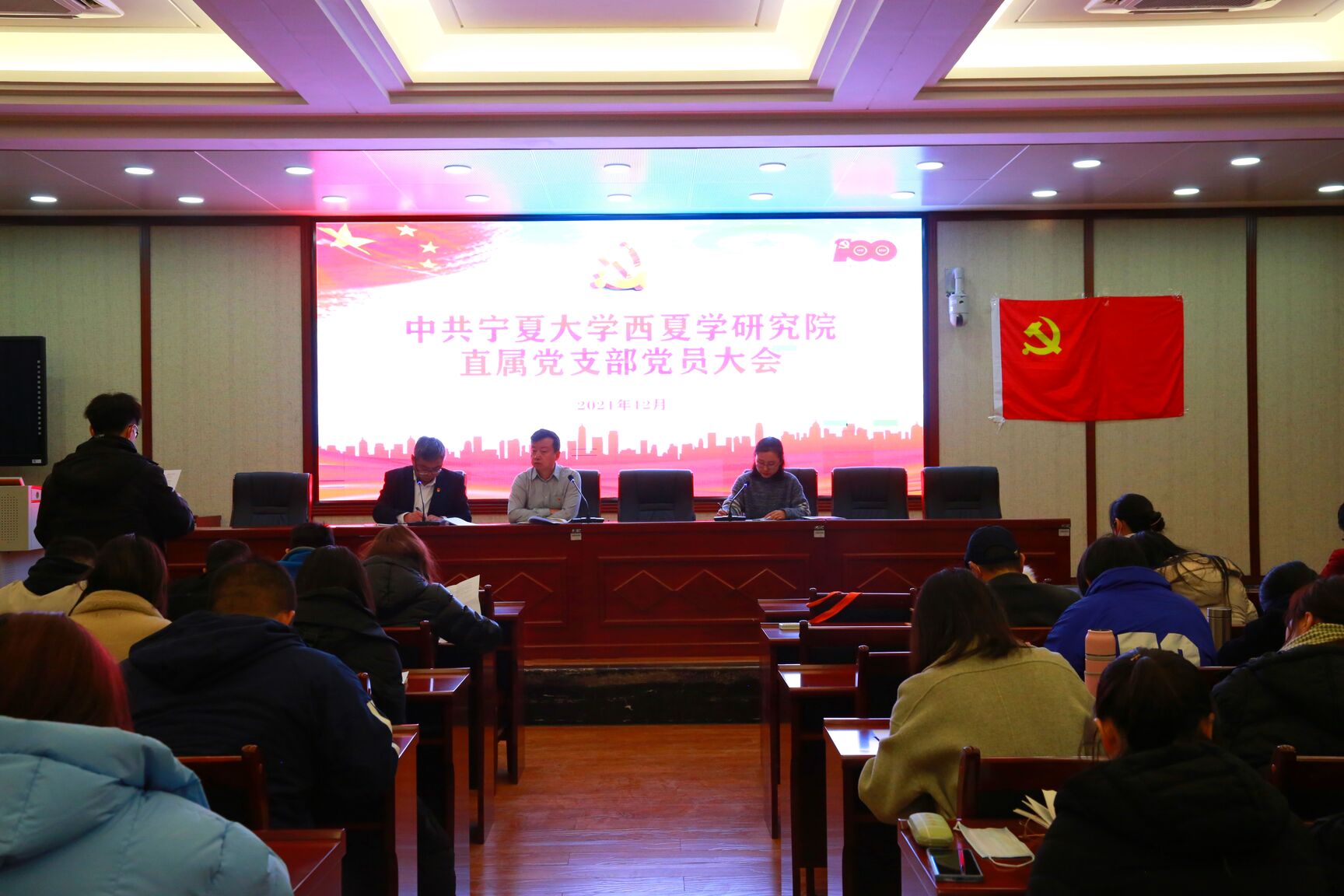 为加强基层党组织和党员队伍建设,根据中共WilliamHILL中国西夏学研究院直属党支部工作计划,2021年12月16日下午,西夏学研究院直属党支部召开了党员大会,讨论陆韦志等13名预备党员转正和接收郑子稷等15名发展对象为中共预备党员的事宜。会议由直属党支部书记党锐锋同志主持。